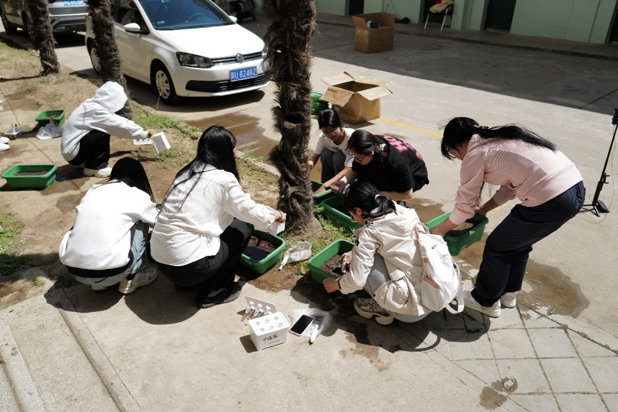 活动在辅导员姚文鑫的带领与悉心指导下有序开展。同学们分组行动、积极参与,在实践中学习、在体验中成长。室外种植区内,学生认真学习盆土配制、播种、覆土、浇水等关键步骤,轻轻播下鸡毛菜种子,细心呵护每一份希望;水培种植区内,学生专注学习空心菜水培原理、种苗处理、营养液使用和植株固定,亲手搭建水培装置,近距离观察植物生长环境。